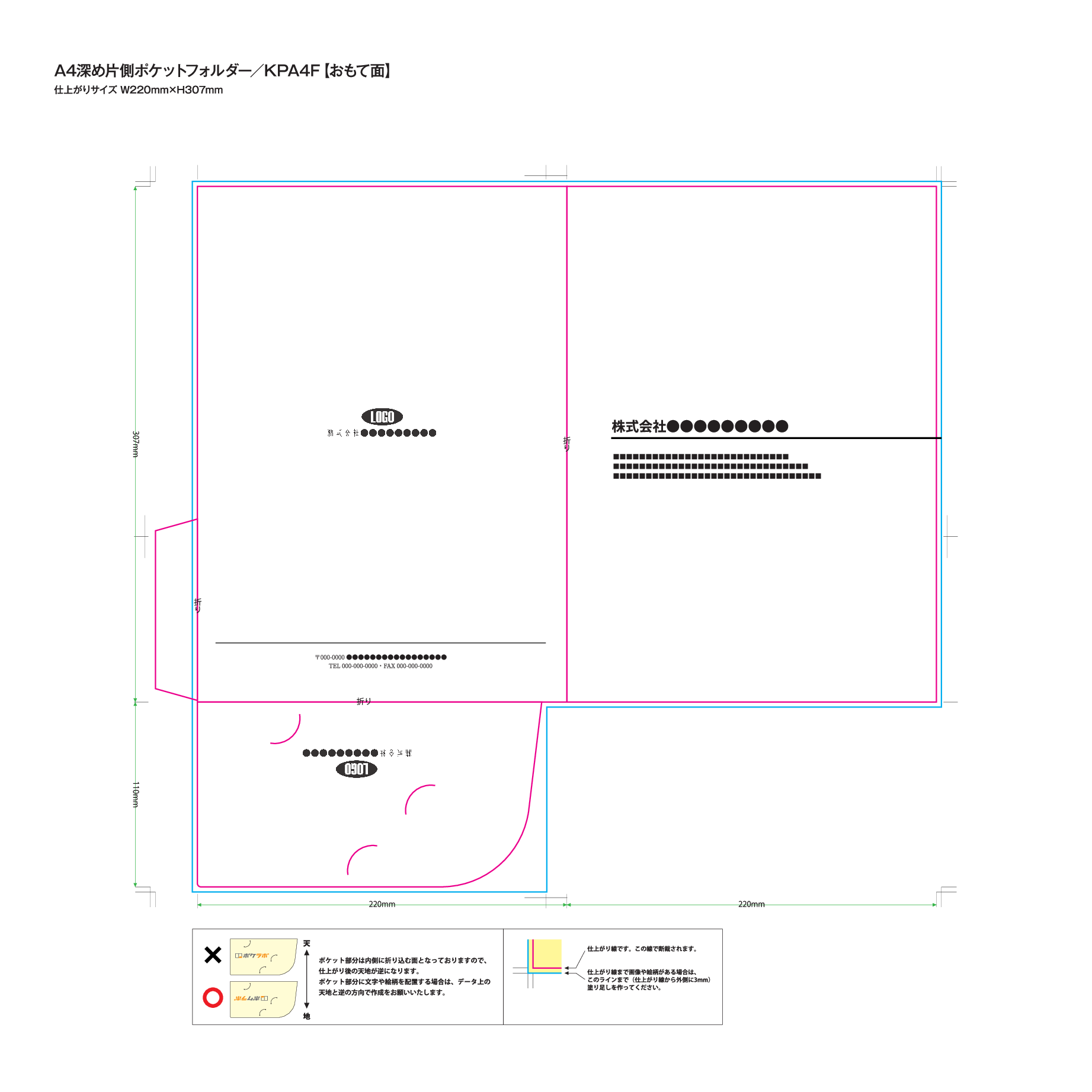 【両面モノクロカラー】A4深め片側ポケットフォルダー【KPA4F】